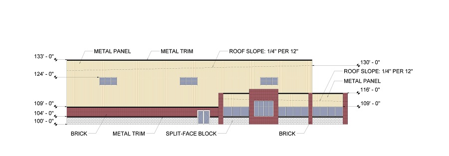 The Virtual Building is designed for manufacturing operations but can be adapted for a distribution facility as well. It is designed as a 50,000 square foot facility with 24 to 34 foot ceiling heights, four loading docks, and 5,500 square foot of office space. As proposed, the Virtual Building can be constructed in six months based on a timeline that has been developed by Project Architects. It can also be expanded to 100,000 square feet.